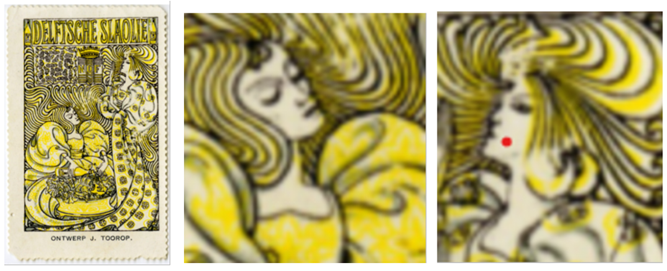 2) Met de pointillistisch schilderwijze trachtte Toorop met fel gekleurde stippen lichteffecten vast te leggen (periode 1888 – 1891).