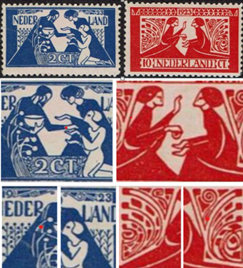 5) Kinderpostzegels 1923 in overzichtelijk lineaire / geometrische uitvoering