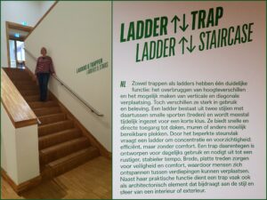 Zowel ladders als trappen zijn ontworpen met een heldere functionele missie: het overbruggen van fysieke hoogtes. De eenvoudige lijnen en geometrische vormen dragen bij aan een esthetische aantrekkingskracht. Ze helpen ons letterlijk omhoog en omlaag, maar ook figuurlijk- door groei, verandering en ambitie. Soms klimmen we gestaag, soms struikelen we, en soms voelen we de drang om een uitweg te vinden.