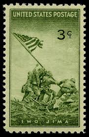 Iwo Jima is een klein Japans vulkanisch eiland in de Stille Oceaan, vooral bekend om de slag tijdens de Tweede Wereldoorlog en het iconische beeld van de vlagopheffing op Mount Suribachi, een 161 meter hoge berg op het eiland. Tijdens de mooie expo American Photography in het Rijksmuseum van 7 februari tot en met 9 juni 2025 was de bekende zegel en het complete velletje met 50 zegels te zien.