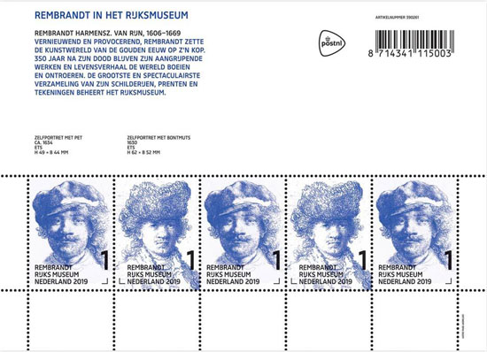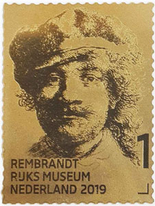 - Rembrandt in het Rijksmuseum (gouden postzegel)